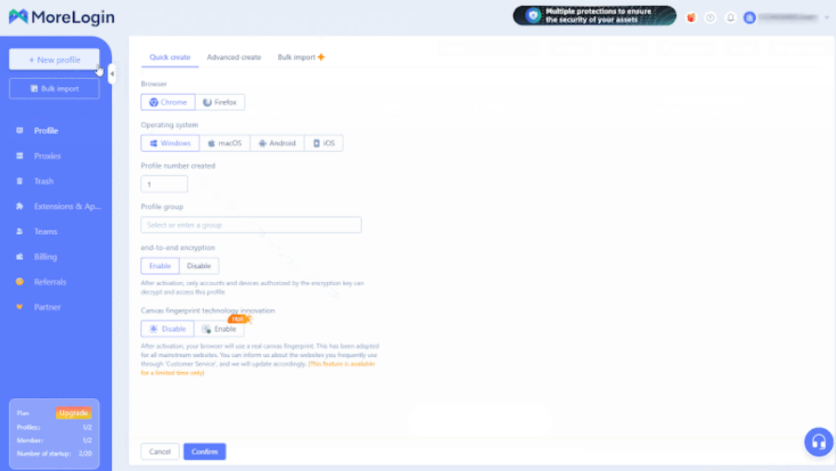 MoreLogin обеспечивает защиту пользовательских данных и цифровых активов, применяя современные технологии безопасности.