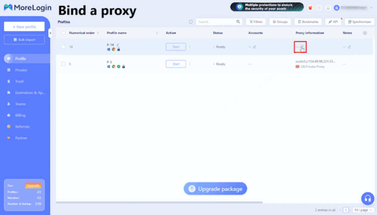 Привяжите прокси, вы можете приобрести прокси непосредственно в MoreLogin. Также вы можете приобрести его на сайте прокси, которому вы доверяете, а затем импортировать его в MoreLogin.